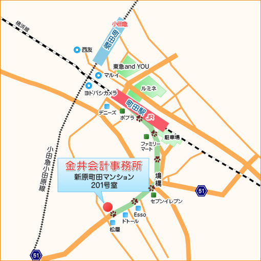 | 徒歩の場合はJR町田駅南口から7分ほどです。